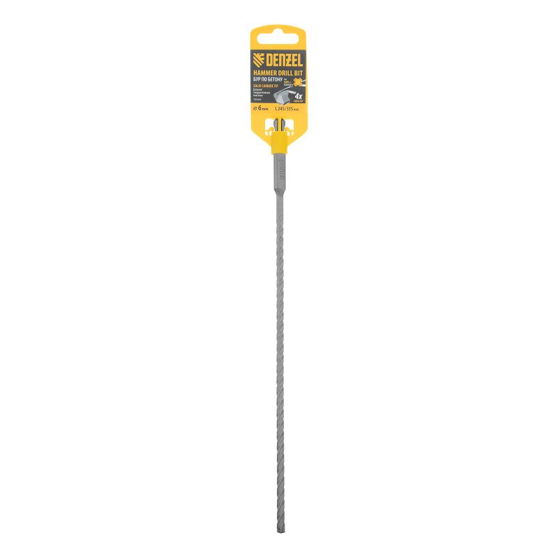 Бур по бетону, цельная крестовая пластина, 6x315 мм, SDS PLUS Denzel, 705304