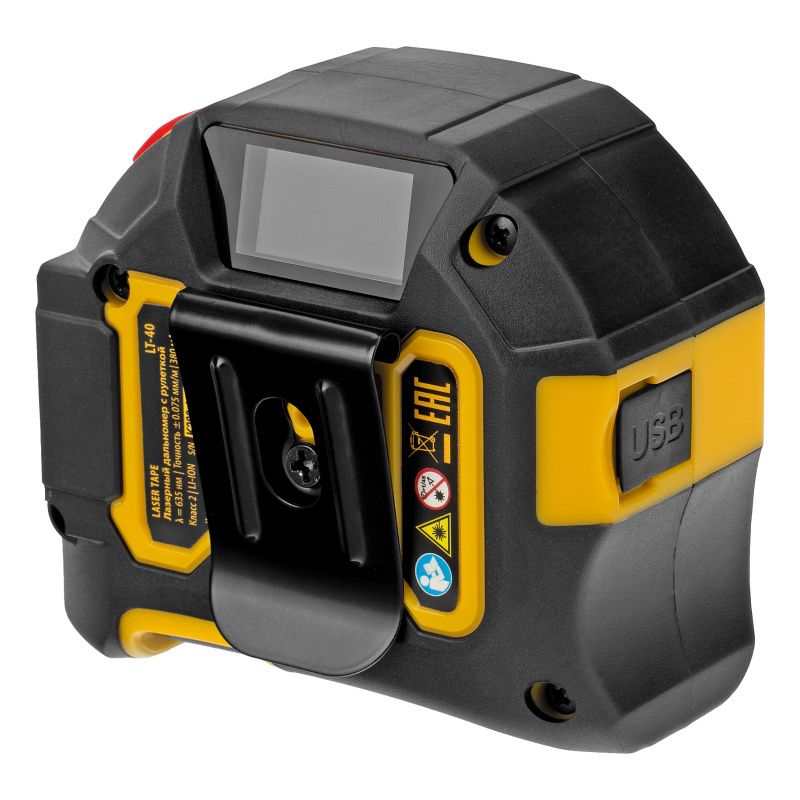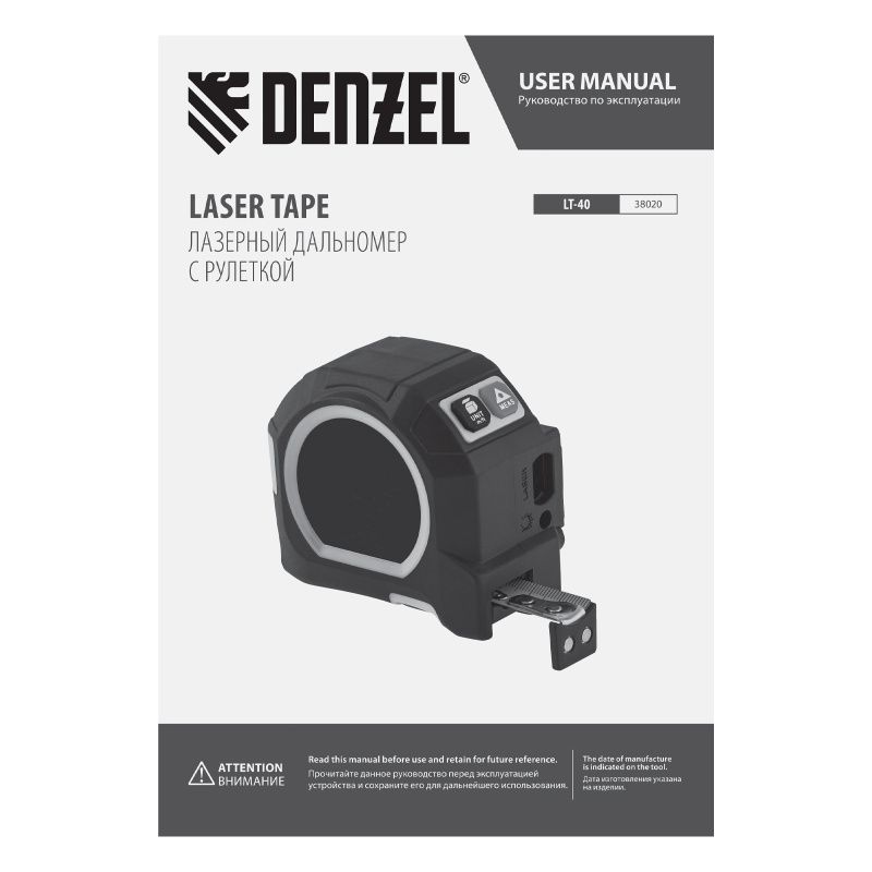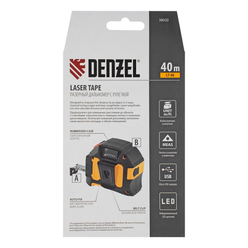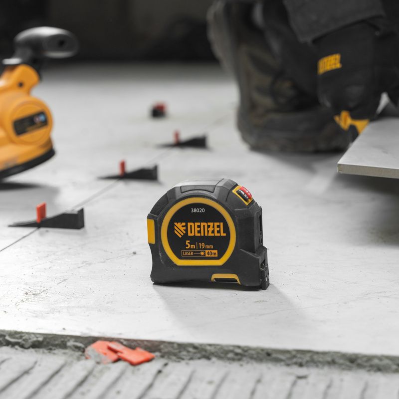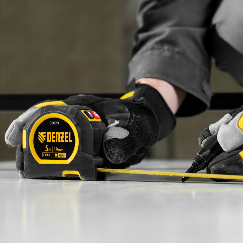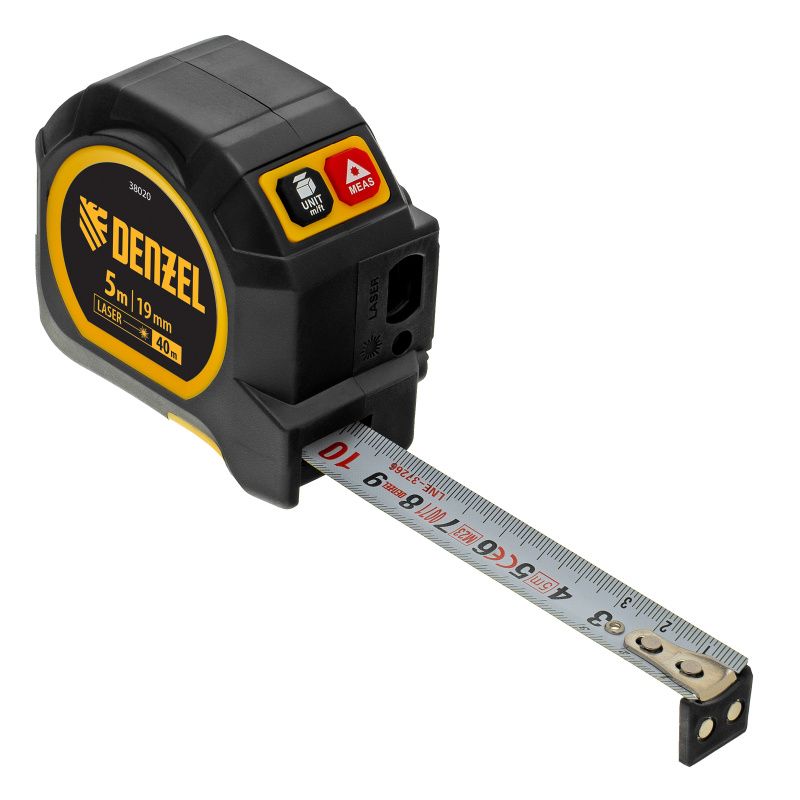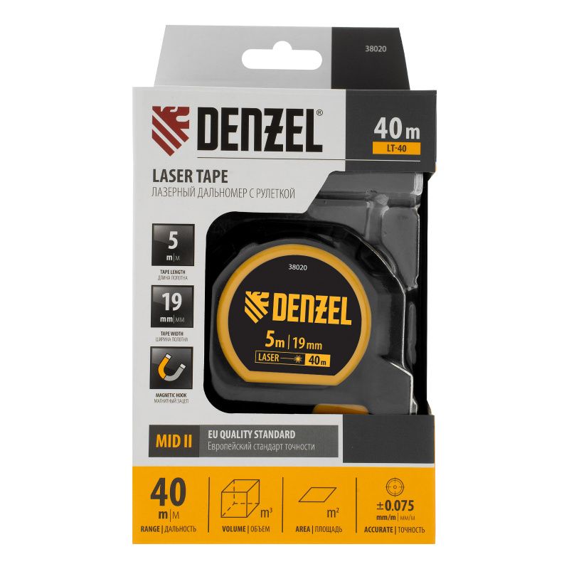Лазерный дальномер с рулеткой LT-40, 5м x 19 мм, дальномер 40м, автомат. фиксация Denzel, 38020