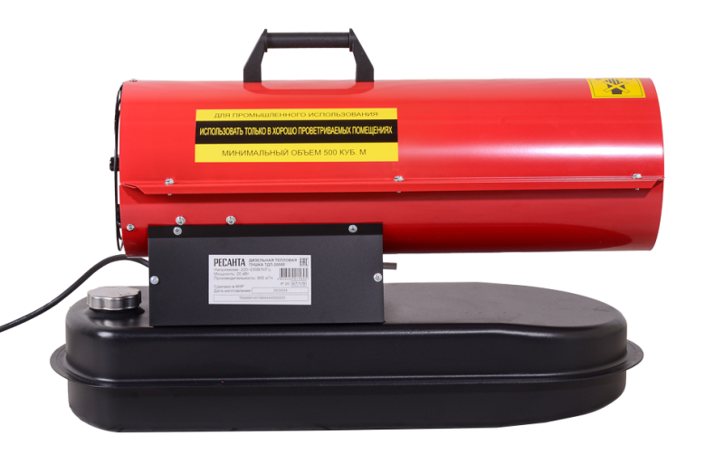Дизельная тепловая пушка ТДП-20000 - надежное и эффективное оборудование для обогрева помещений большой площади. Она идеально подходит для использования на строительных площадках, в складских помещениях, гаражах, цехах и других промышленных объектах.