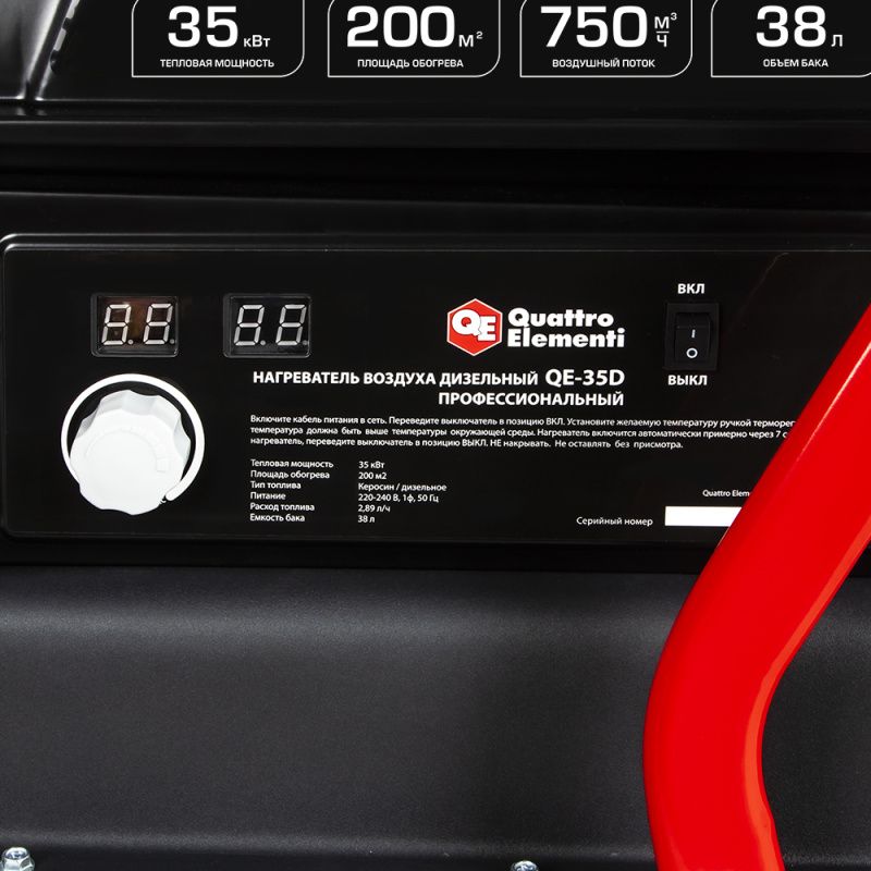 Дизельная тепловая пушка Quattro Elementi QE-35D - надежное и эффективное решение для обогрева помещений различного назначения. Он обеспечивает быстрый и равномерный нагрев воздуха, позволяя создать комфортную температуру даже в самых холодных условиях.