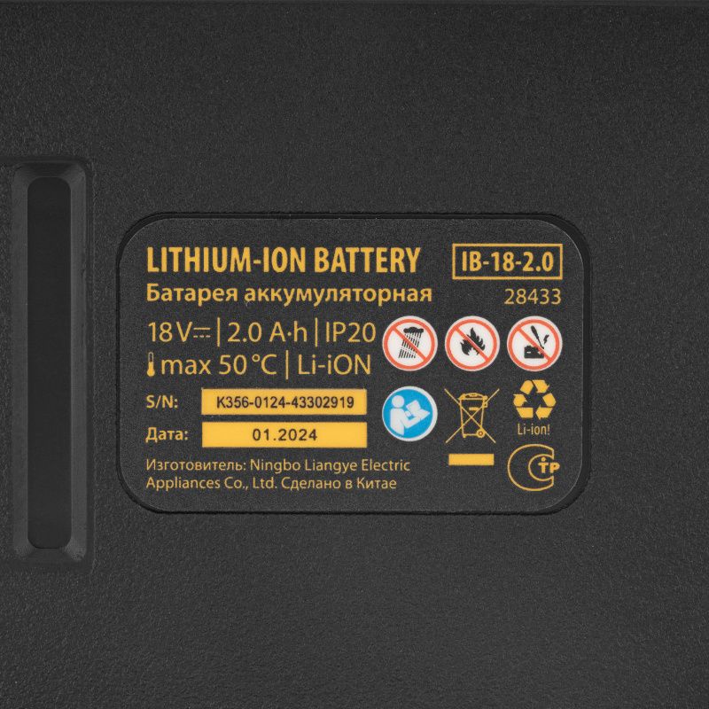 Батарея аккумуляторная IB-18-2.0, Li-Ion, 18 В, 2.0 А/ч Denzel, 28433