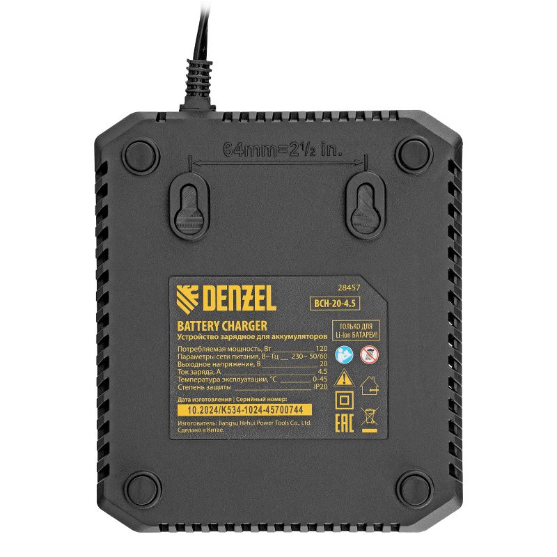 Устройство зарядное для аккумуляторов Denzel BCH-20-4.5, Li-Ion, 20 В, 4,5 А, 28457