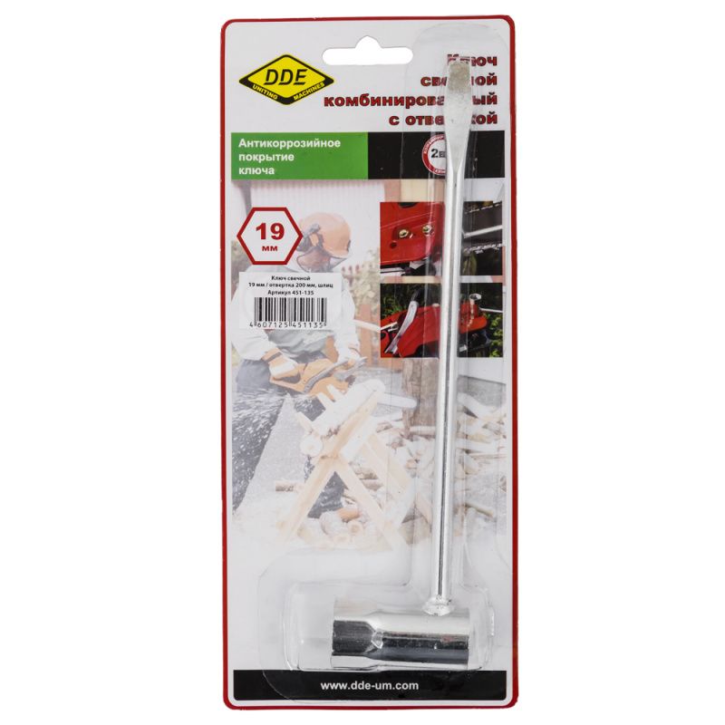 Ключ свечной комбинированный DDE 19мм, отвертка шлиц, длина 200 мм., 451-135