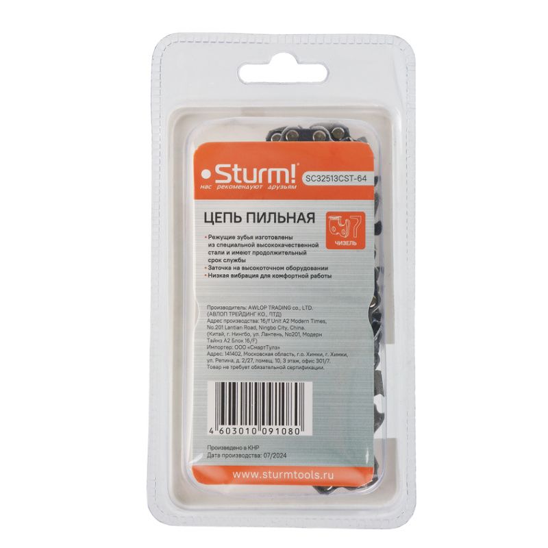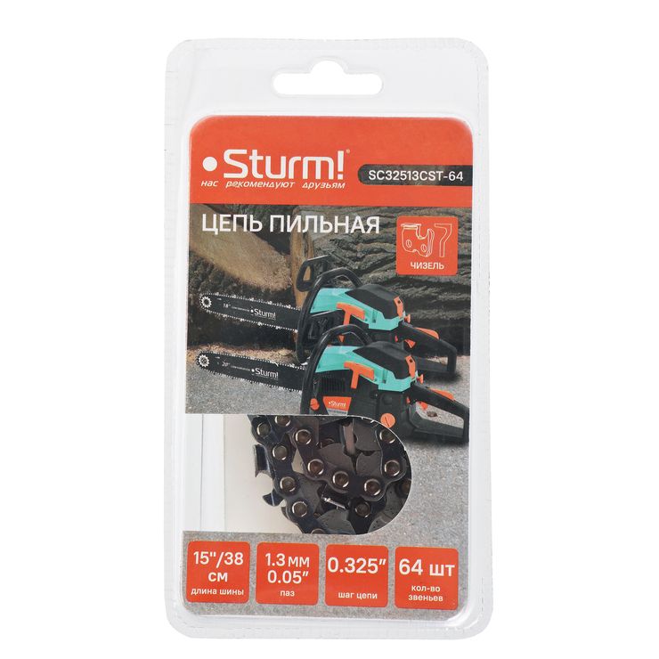 Цепь 64 звена, паз 0,050", шаг 0.325",КВАДРАТНЫЙ ХРОМИРОВАННЫЙ,КАЛЕНЫЙ зуб, Sturm, SC32513CST-64