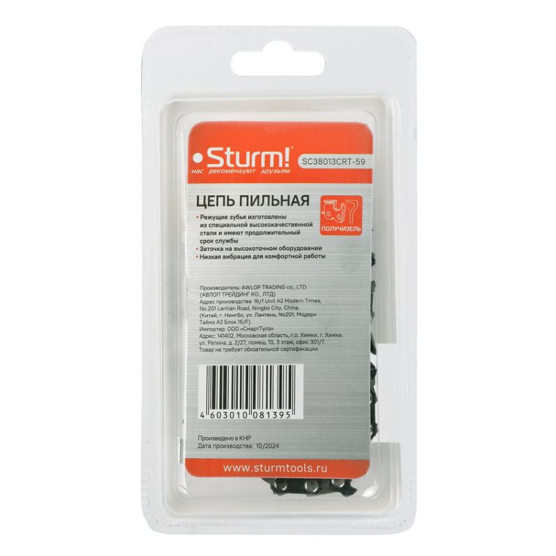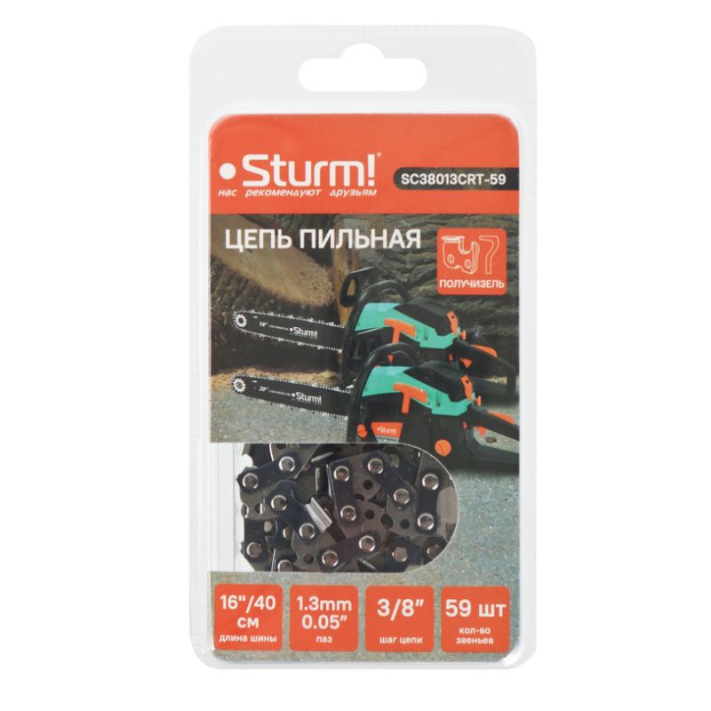Цепь Sturm 59 звеньев, паз 0,050", шаг 3/8", КРУГЛЫЙ ХРОМИРОВАННЫЙ, КАЛЕНЫЙ зуб, SC38013CRT-59