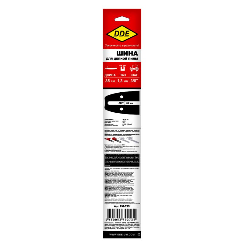 Шина пилы цепной сварная DDE 14"/ 35 см 3/8"-1,3-52 зв, 792-735