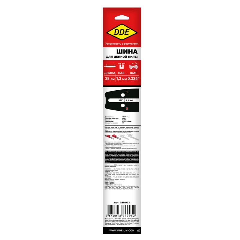 Шина пилы цепной сварная DDE 15"/ 38 см .325"-1,3-64 зв, 249-952
