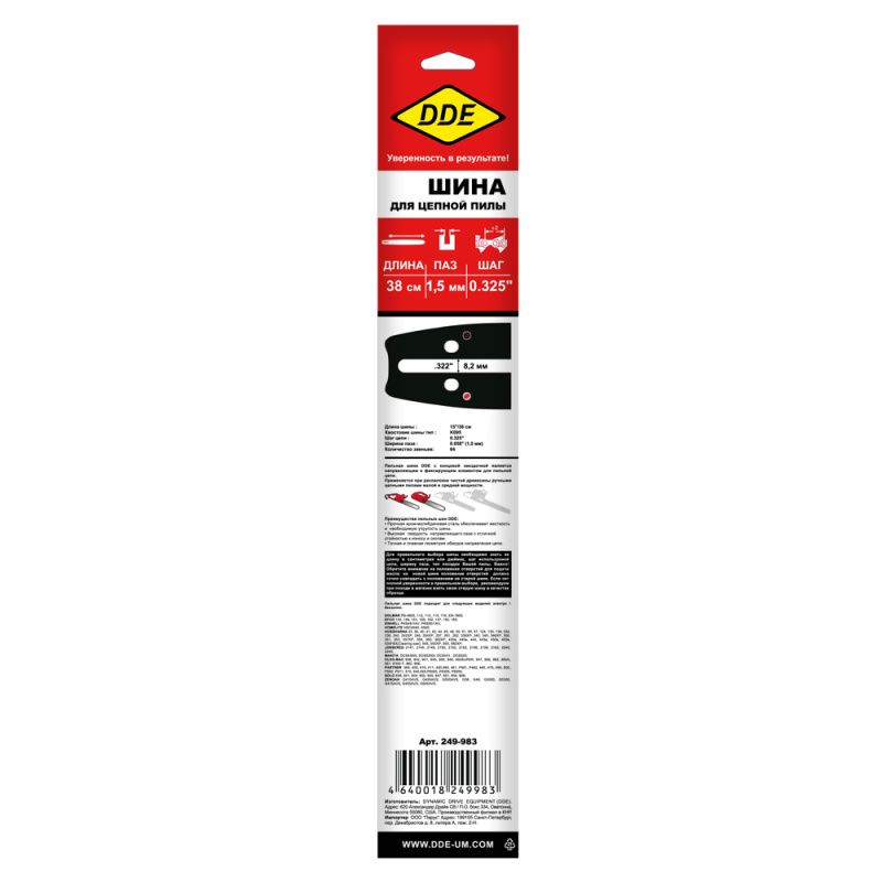 Шина пилы цепной сварная DDE 15"/ 38 см .325"-1,5-64 зв, 249-983