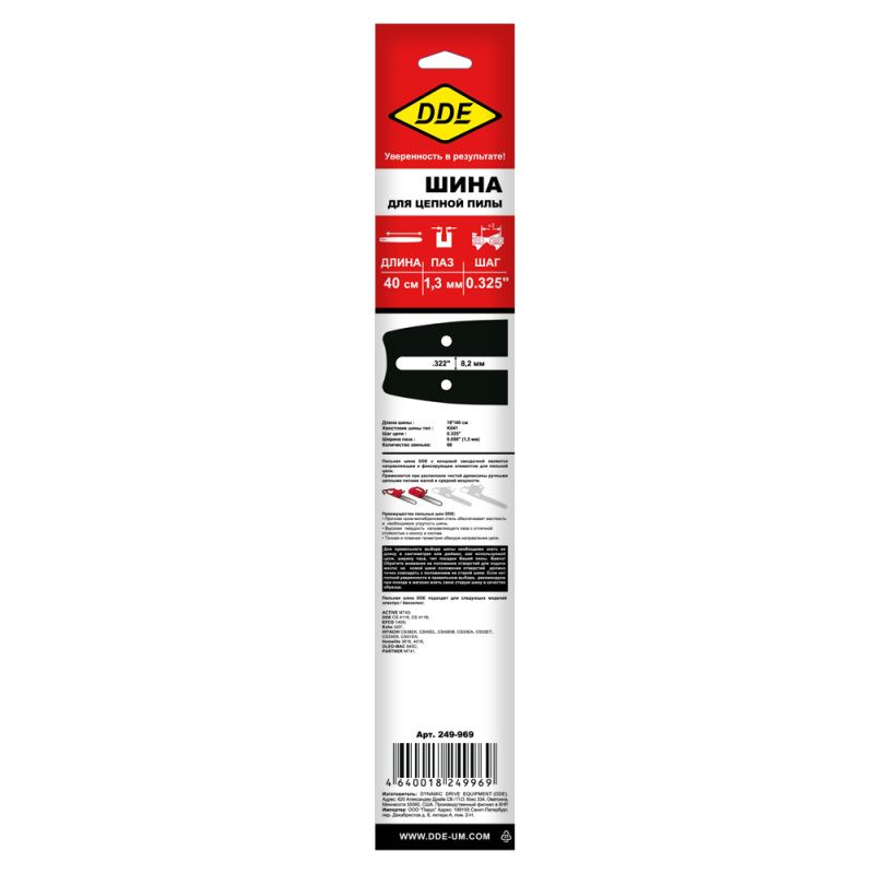 Шина пилы цепной сварная DDE 16"/ 40 см .325"-1,3-66 зв, 249-969