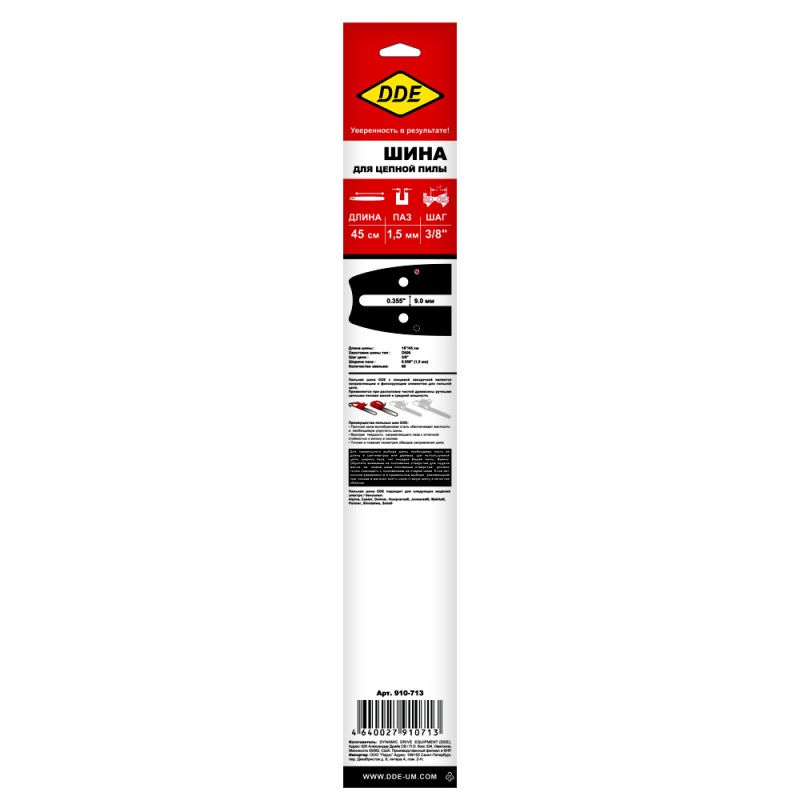 Шина пилы цепной сварная DDE 18"/ 45 см 3/8"-1,5-68 зв проф., 910-713