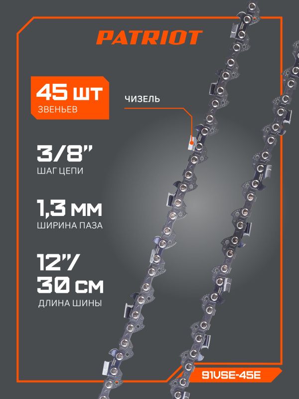 Цепь пильная PATRIOT EXPERT 91VSE-45E, 862351345