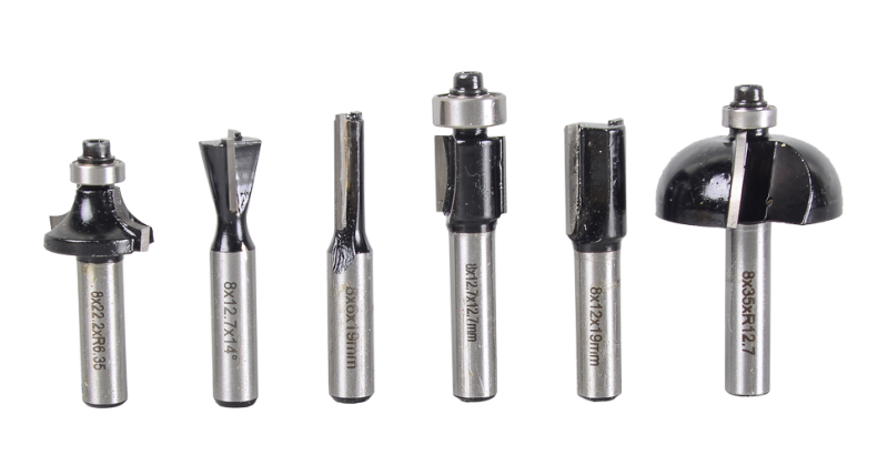 Набор фрез по дереву Вихрь 6шт с хвостовиком 8мм в кейсе для работы с фрезерными станками и ручными фрезерами.