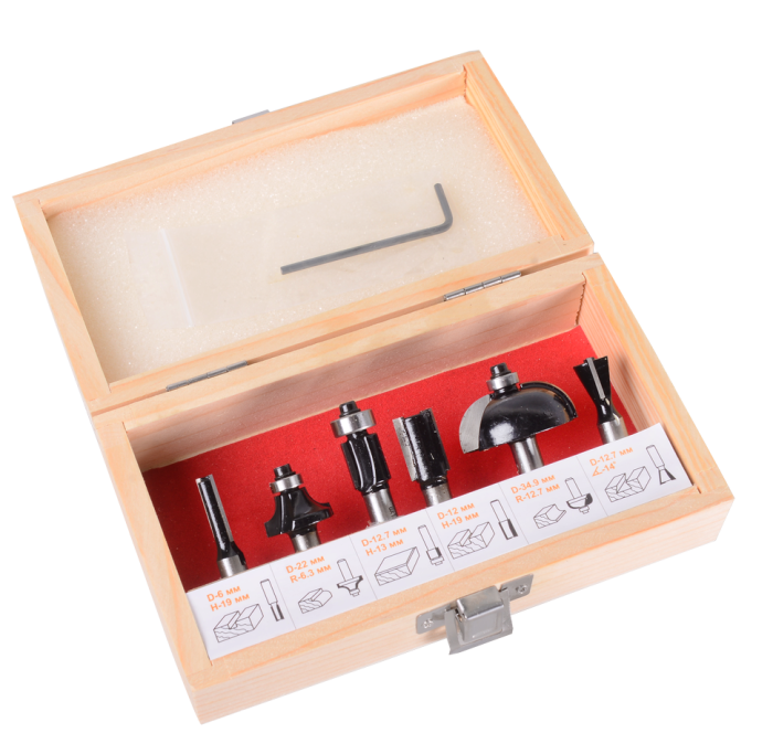 | Модель | Набор фрез по дереву 6шт (хвостовик 8мм), кейс |