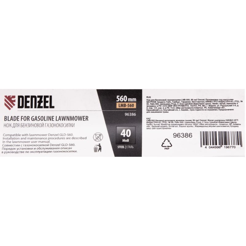 Нож для бензиновой газонокосилки Denzel LMB-560, 56 см, 96386
