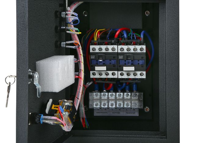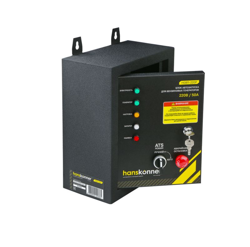| Дополнительные характеристики | 1. Автоматический запуск генератора – при пропадании напряжения в основной сети АВР подает сигнал на запуск бензинового генератора. После выхода генератора на рабочий режим АВР переключает питание нагрузки с основной сети на генератор. 2. Контроль напряжения сети – система постоянно отслеживает наличие напряжения в основной сети и автоматически возвращает питание при его восстановлении. 3. Защита от перегрузок – контролирует ток нагрузки и предотвращает повреждение генератора. 4. Ручной и автоматический режимы – возможность принудительного управления (например, для обслуживания). 5. Индикация состояния – световая индикация режимов работы (сеть/генератор, авария и т. д.). |