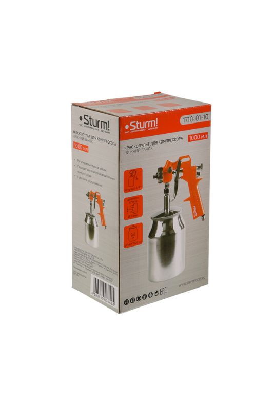 Краскопульт пневматический Sturm 1000 г, нижний бачок, сопло 1,5 мм, 1710-01-10