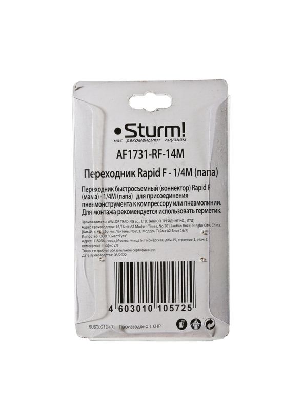 Пневмофитинг рапид (мама) на наружнюю резьбу (папа) Sturm, AF1731-RF-14M