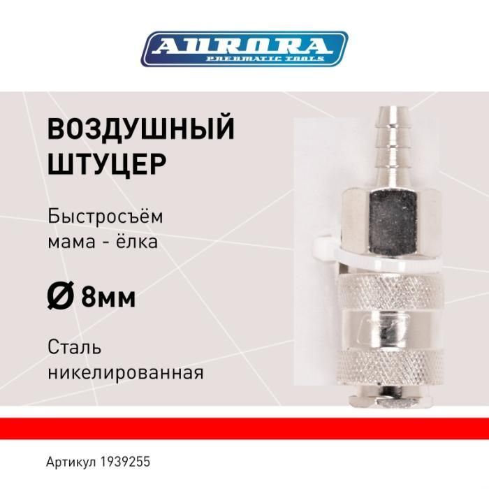Штуцер мама ёлка d.8мм F, никелированная сталь, уп. 1шт, Aurora, 1939255