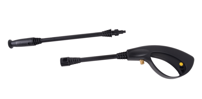Легко и просто присоединяется к шлангу. Есть нескользящая рукоятка для комфортной работы. Рассчитан на работу с водой до +50°C. В комплекте 2 распыляющие трубки.