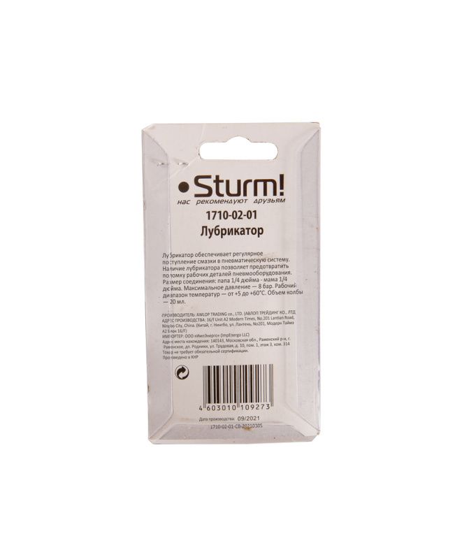 Лубрикатор-мини (масленка) для пневмоинструмента папа/мама 1/4" Sturm 1710-02-01, 1710-02-01