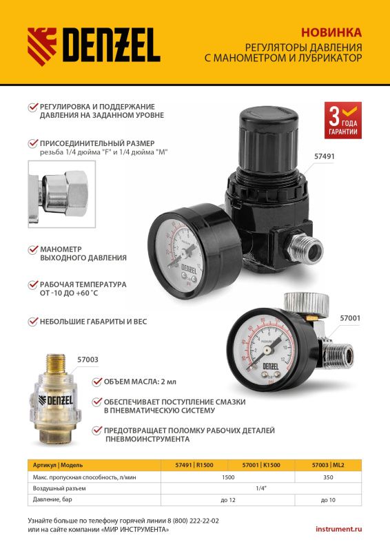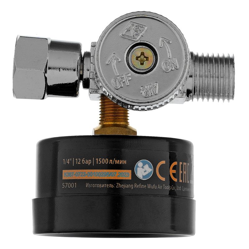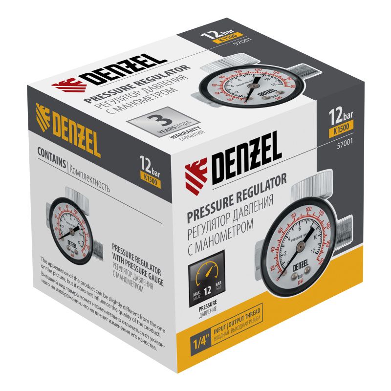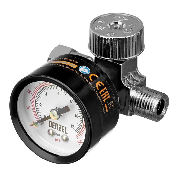 Регулятор давления с манометром для краскораспылителя K1500, 12 бар, 1/4" Denzel, 57001