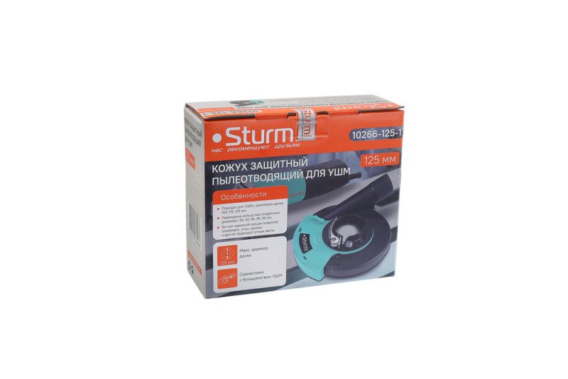 Sturm 10266–125-1 – защитный кожух к УШМ для реза с отводом пыли – предназначен для эффективного удаления пыли и абразивных частиц из рабочей зоны при проведении отрезных работ с помощью УШМ с максимальным диаметром диска до 125 мм. Обеспечивает дополнительный комфорт и безопасность пользователя