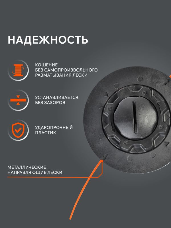 Крепление: Шестигранник + Гайка М8х1,25 правая резьба, диаметр лески 2,0 - 2.4 мм.
