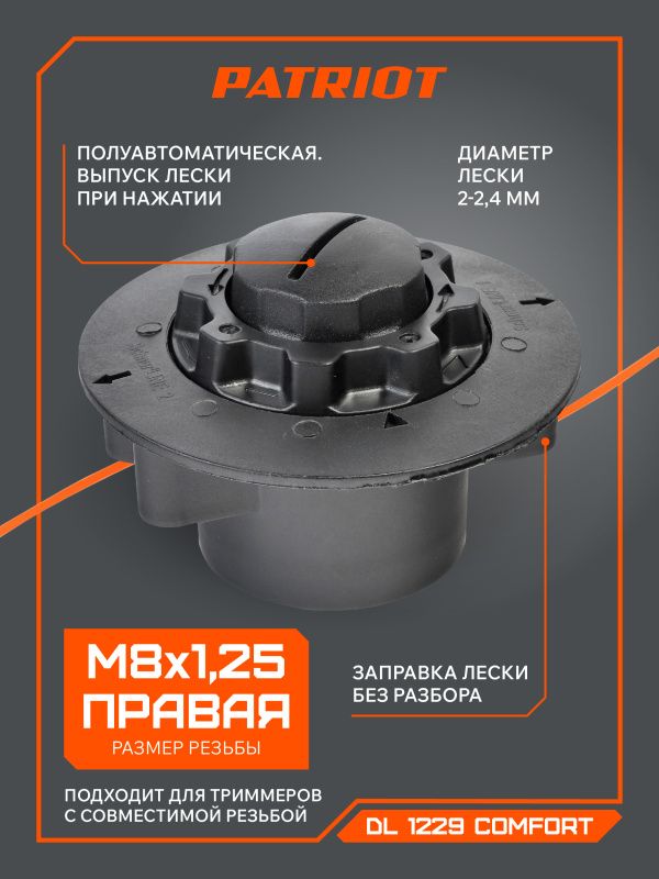 Катушка полуавтоматическая Patriot DL-1229 Comfort. Для триммеров Stihl FS 38, FS 40, FS 45, FSE 60, FSE 71, FSE 81, Viking TE 600, TE 700,, 807112229