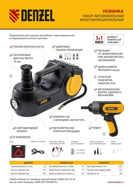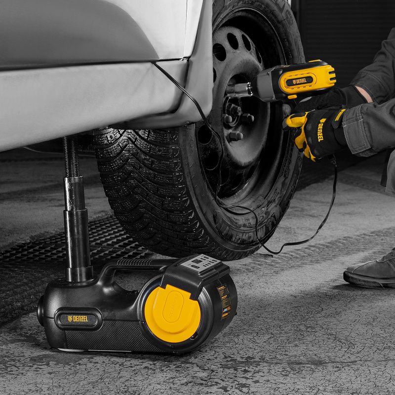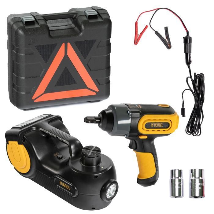 Домкрат электрогидравлический «3 в 1» (1,5 т), 12В, с гайковертом электрическим, в наборе Denzel, 51190