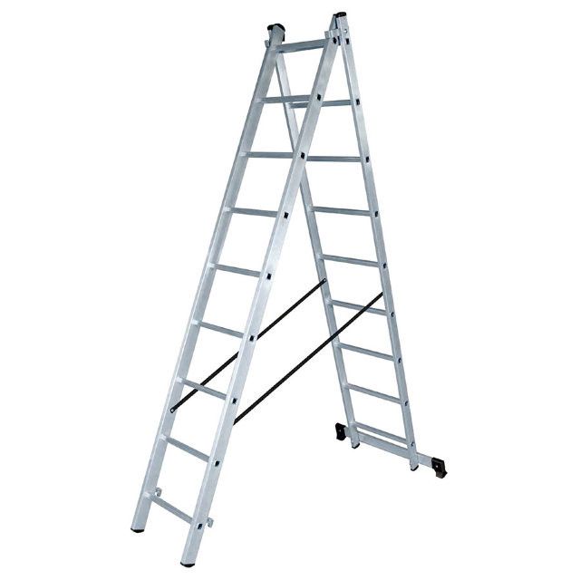 Лестница алюминиевая ВИХРЬ ЛА 2х9 двухсекционная, может использоваться как стремянка и приставная лестница.Корпус с антикоррозийным покрытием, изготовлен из алюминия. Благодаря пластиковым наконечникам на опорах лестница не скользит по поверхности. Модель компактная, удобно хранить благодаря механизму трансформации.