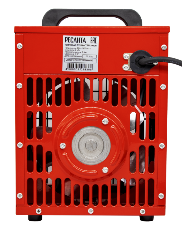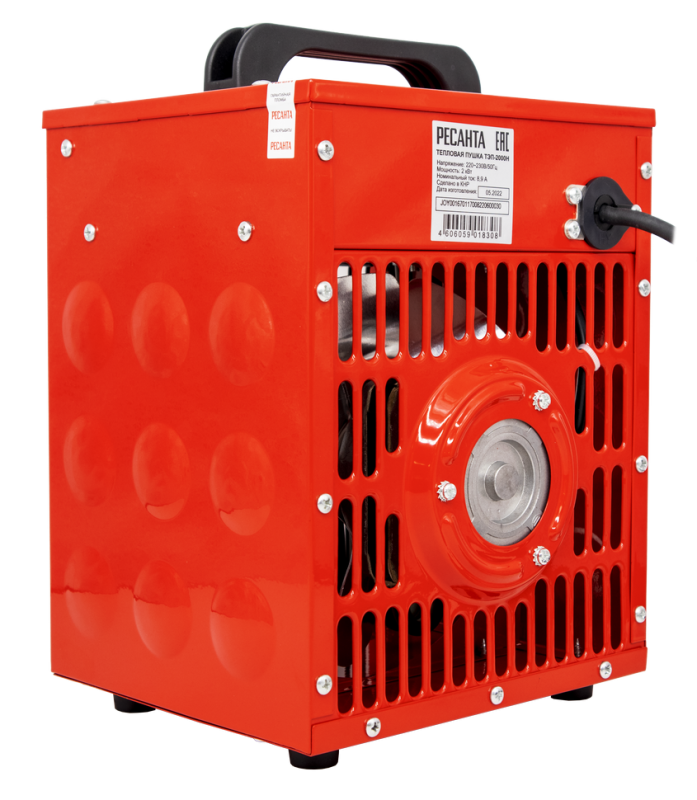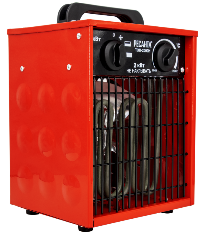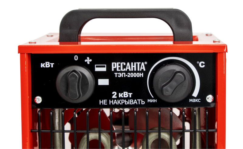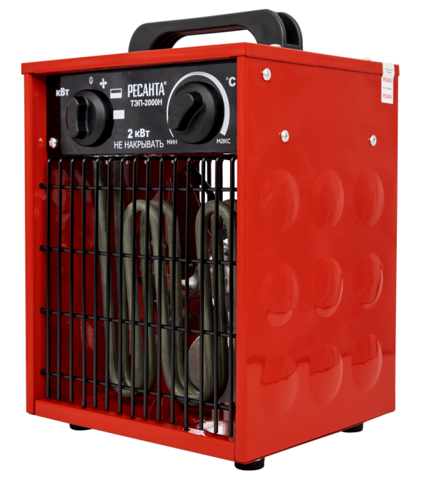 Тепловая электрическая пушка РЕСАНТА ТЭП-2000Н предназначена для вентиляции и обогрева жилых и производственных помещений, складов, гаражей, а также для обогрева и сушки в строительстве. Прибор относится к тепловым пушкам компактного типа. Нагревательный элемент - трубчатый. Данная модель рассчитана на питание от электросети переменного тока частотой 50 Гц, номинальным напряжением 220-230В (однофазная). Устанавливается на полу.Обогреватель оснащен регулировкой режимов работы (мощности):