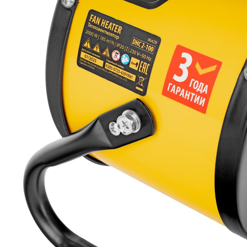 Электрическая тепловая пушка Denzel DHC 2-100 — это эффективный и безопасный способ обогреть большие помещения. С её помощью вы сможете создать комфортные условия в складах, ангарах, мастерских и других помещениях.