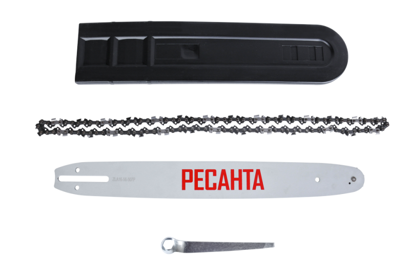 Отличительными особенностями электропилы Ресанта являются простота и удобство в работе, ведь она не требует заправки топливом и работает от сети 220В. Также стоит отметить низкий уровень шума, создаваемый при работе, а также полное отсутствие выхлопных газов. Это означает, что вы можете использовать пилу не только на улице, но и в помещении при ремонтных и строительных работах. Вы можете легко регулировать натяжение цепи с помощью винта, расположенного на корпусе справа. Прямая передача мощности - проста и надежна. К характеристикам, обеспечивающим комфортное пользование инструментом, также можно отнести автоматическую смазку цепи. Чтобы вы смогли определить уровень смазки для цепи, в корпусе есть смотровое окошко с делениями. Единственная особенность - это недостаточная мобильность, ведь пользоваться инструментом можно только в непосредственной близости от розетки переменного тока 220В. Этот легко исправить, используя переноску (с кабелем подходящего сечения!) или бензогенератор Ресанта. Для электропилы ЭП-2216 подойдут цепи со следующими параметрами: количество звеньев 57, шаг цепи 3/8, толщина ведущего звена 1.3, шина 161.