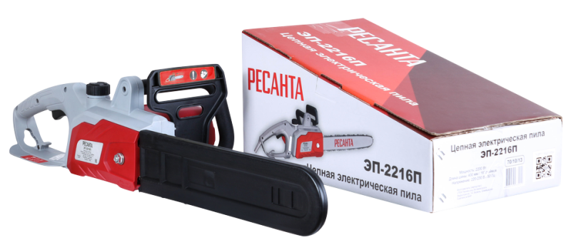 Электропила Ресанта ЭП-2216П предназначена для бытового использования: распиловка бревен, валка садовых деревьев, обрезка сучьев. Благодаря обрезиненной рукоятке держать такой агрегат в руках удобно и комфортно. Привод цепи осуществляется за счет электродвигателя, который работает от сети переменного тока 220В.