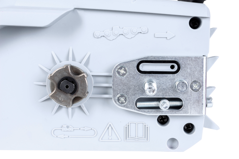 За счёт зубчатого упора фронтальная часть корпуса пилы не будет повреждаться о ветви и другие элементы;
