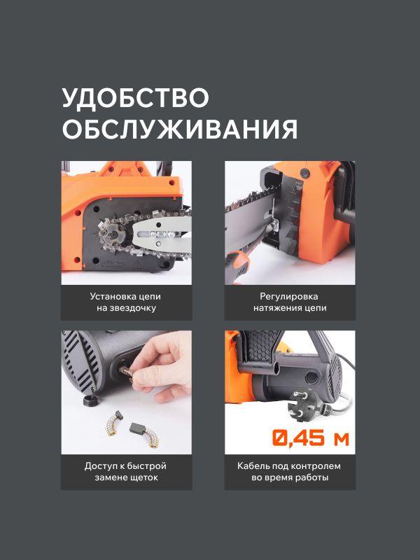 | Дополнительные характеристики | Защита от обратного удара, защита от перегрузок. Автоматическая смазка цепи. |