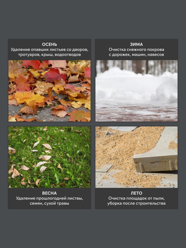 Устройство мультисезонно – зимой его можно использовать для очищения площади от тонкого слоя снега;