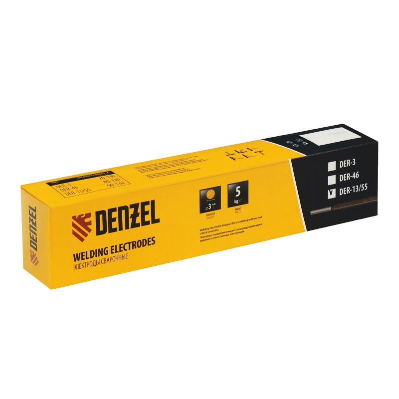 Электроды DER-13/55, диам. 3 мм, 5 кг, основное покрытие Denzel, 97518