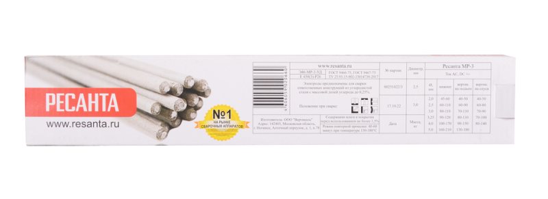 Электроды РЕСАНТА относятся к высококачественным электродам типа МР-3 с рутиловым покрытием и изготовлены в соответствии с требованиям ГОСТ.