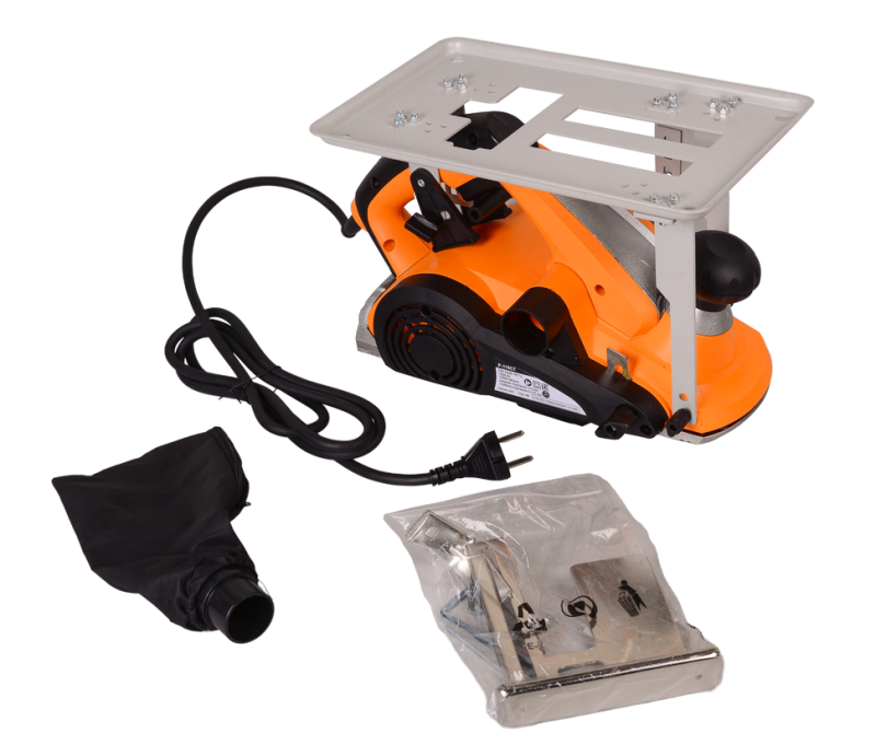 Для поддержания рабочего места в чистоте, инструмент оснащен патрубком для отвода пыли. С помощью широкой рукоятки можно не только крепко удерживать инструмент во время работы, но и регулировать глубину строгания от 0 до 3 мм. Для удобства работы продолжительное время на рукоятке предусмотрен фиксатор пусковой клавиши. Воздушное охлаждение исключает возможность перегрева в течение работы.