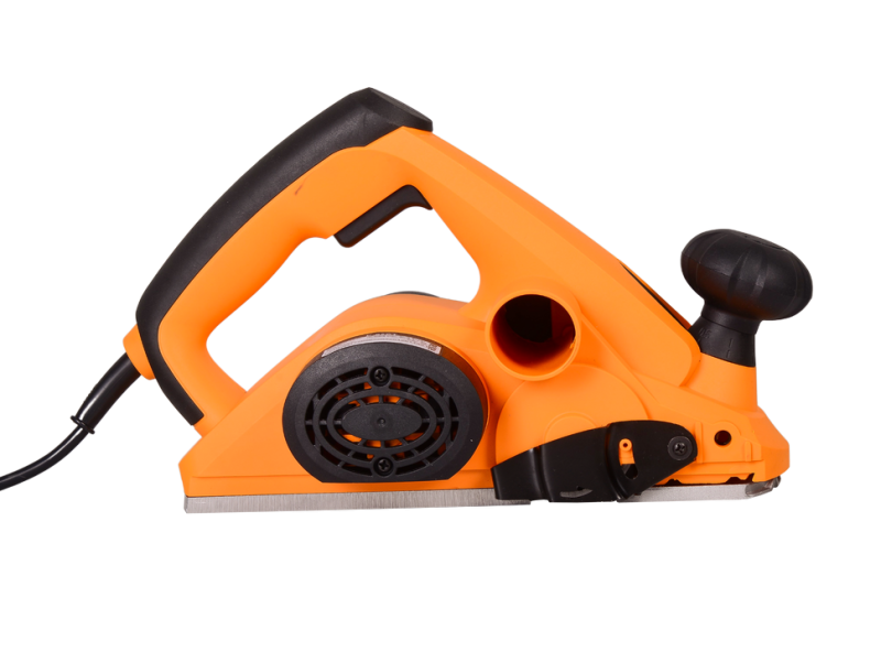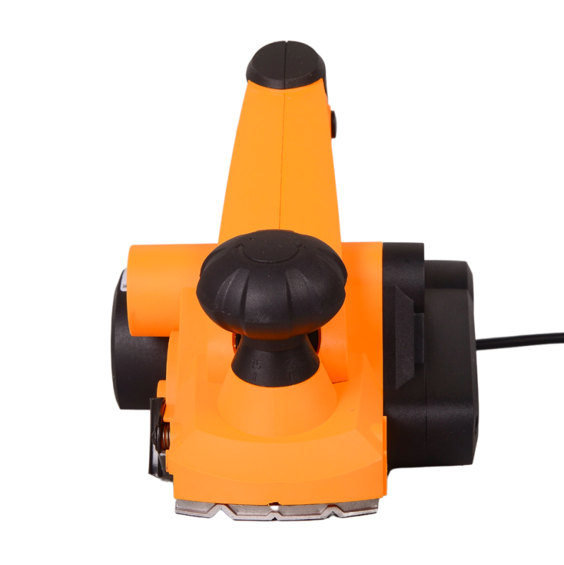 Для поддержания рабочего места в чистоте, инструмент оснащен патрубком для отвода пыли. С помощью широкой рукоятки можно не только крепко удерживать инструмент во время работы, но и регулировать глубину строгания от 0 до 3 мм. Для удобства работы продолжительное время на рукоятке предусмотрен фиксатор пусковой клавиши. Воздушное охлаждение исключает возможность перегрева в течение работы.