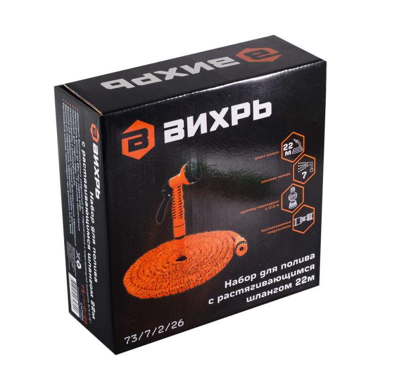 | Модель | Набор для полива с растягивающимся шлангом 22м Вихрь |