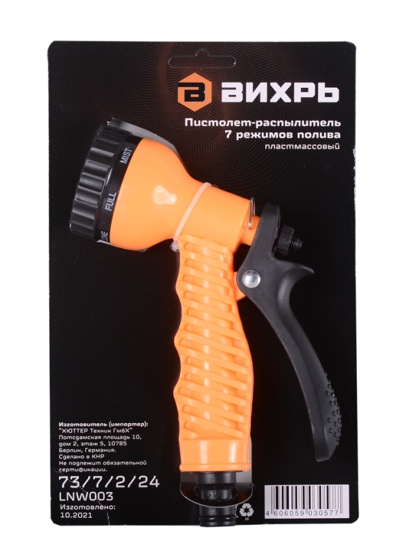 Пистолет-распылитель, 7 режимов полива Вихрь, 73/7/2/24