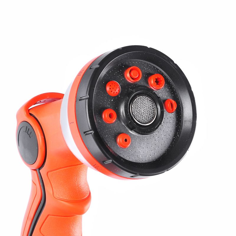 | Дополнительные характеристики | Включение и регулировка напора воды одним пальцем; Восемь режимов полива от жесткой струи до мелкодисперсного распыления; Плавная регулировка потока воды; Легкая и простая смена режимов распыления; Прочные высококачественные материалы; Эргономичная и легкая конструкция. |