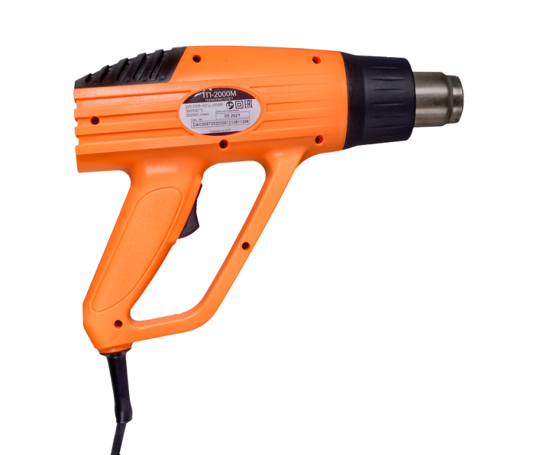Преимущества ТП-2000М:•Два режима воздушного потока для более качественной работы•Переключатель находится под указательным пальцем, что позволяет быстро переключать режимы.Комплект поставки: