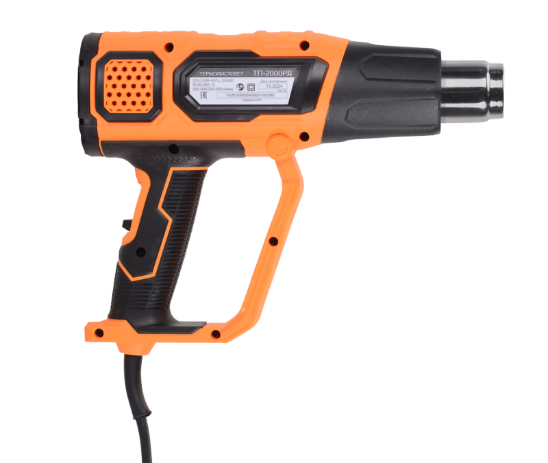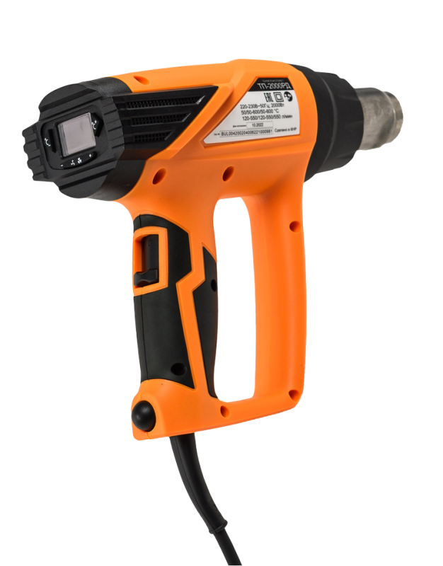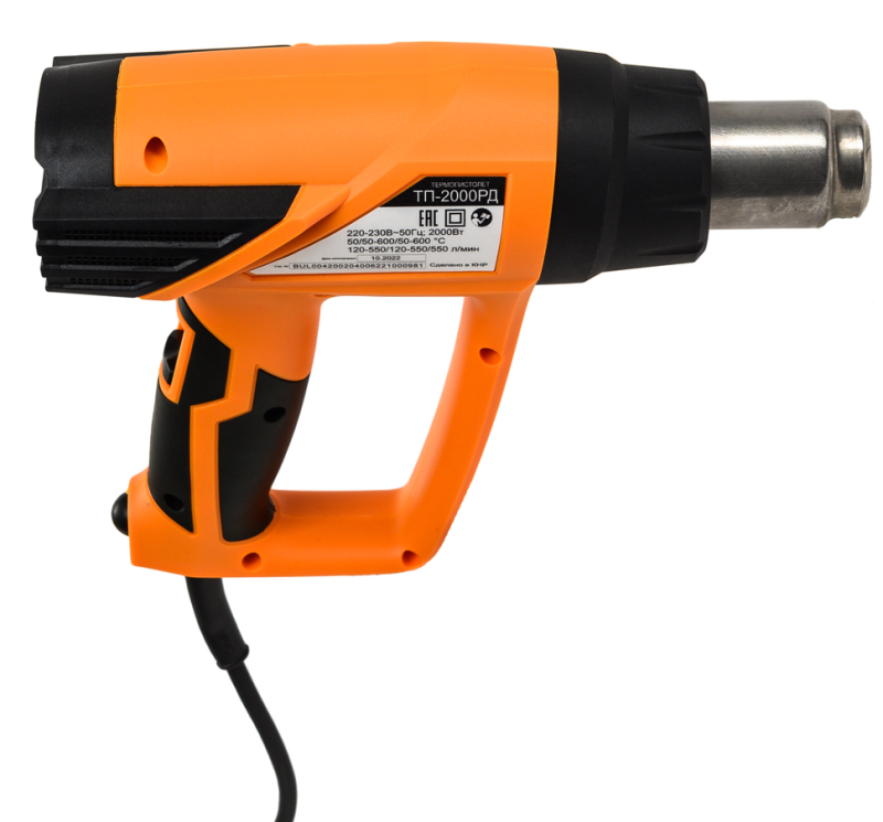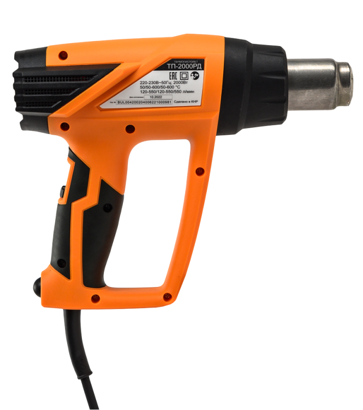 Мощность 2000 Вт. Благодаря высокой мощности фен строительный Вихрь ТП-2000РД обеспечивает быстрый и равномерный нагрев. Это позволяет сократить время, затрачиваемое на выполнение работ, и повысить производительность.