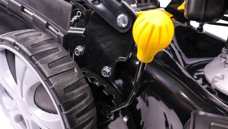 Ширина скашивания составляет 460 мм, что позволяет быстро и качественно стричь траву на больших участках газона. Высота скашивания регулируется в диапазоне от 25 до 75 мм, что позволяет выбрать оптимальную высоту для вашего газона.