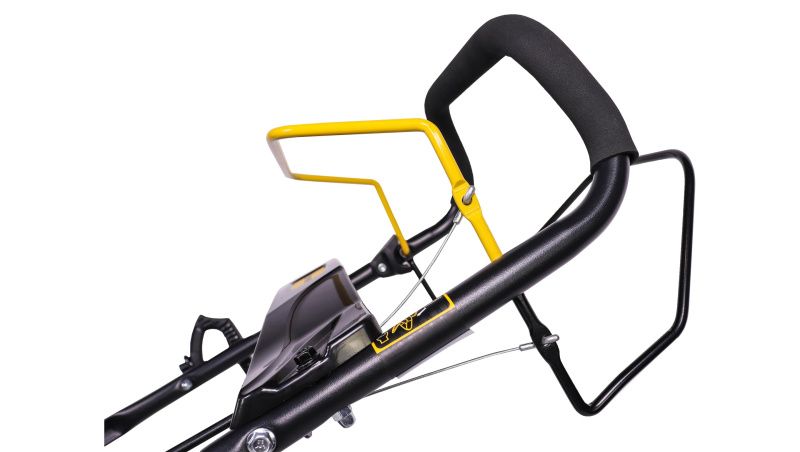 Оснащена большим колесом диаметром 220 мм, которое обеспечивает высокую маневренность и легкость перемещения по газону. Кроме того, косилка оснащена рукояткой, которая позволяет легко управлять ею и контролировать процесс скашивания.