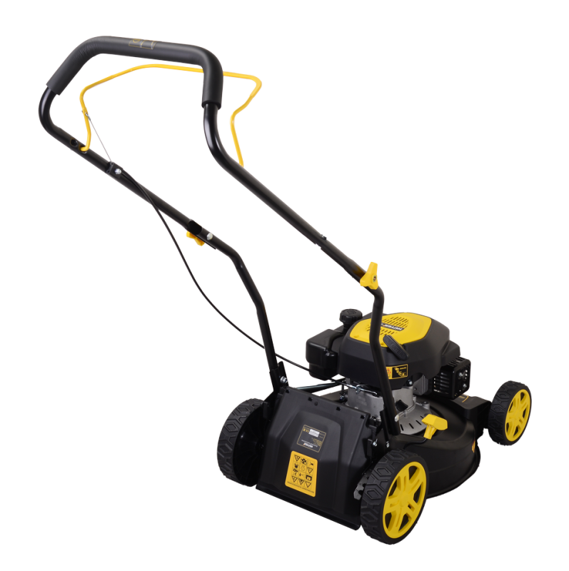 Газонокосилка обладает высокой маневренностью и легкостью в управлении. Она оснащена регулируемой рукояткой, которая позволяет настроить ее под ваш рост и удобство работы. Кроме того, она имеет широкие колеса, которые обеспечивают хорошую проходимость на любом типе поверхности.