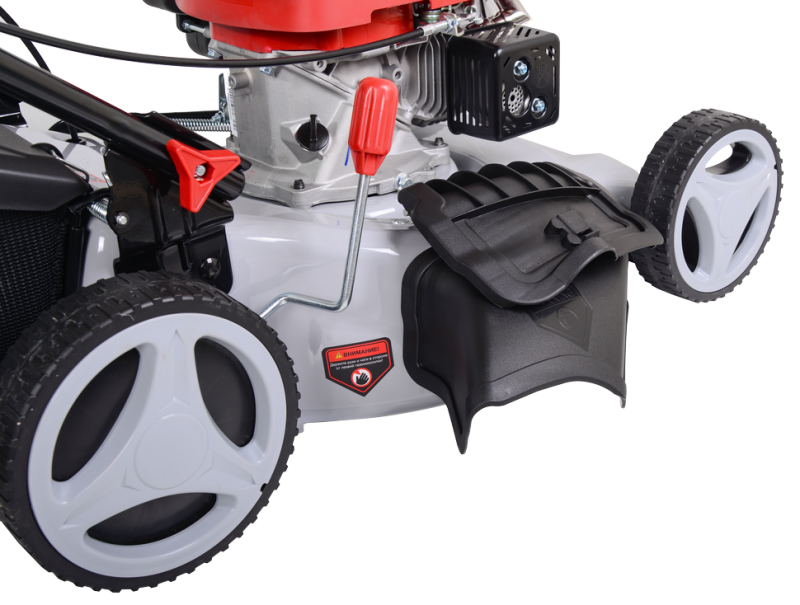 Эта газонокосилка также оснащена большим колесом, которое обеспечивает отличную проходимость даже на неровной поверхности. Вы сможете легко перемещаться по газону, не оставляя следов и не повреждая траву. Кроме того, она оснащена специальным сборником травы, который позволяет собирать скошенную траву и удобно ее утилизировать.